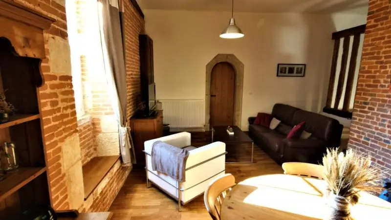 In een voormalig klooster uit de 16e eeuw, een gezellige gîte in het hart van een boerderij. Open keuken naar de woonkamer-eetkamer. 1 tweepersoonskamer (160 cm), badkamer met toilet en wasmachine. Mogelijkheid voor 2 extra bedden.