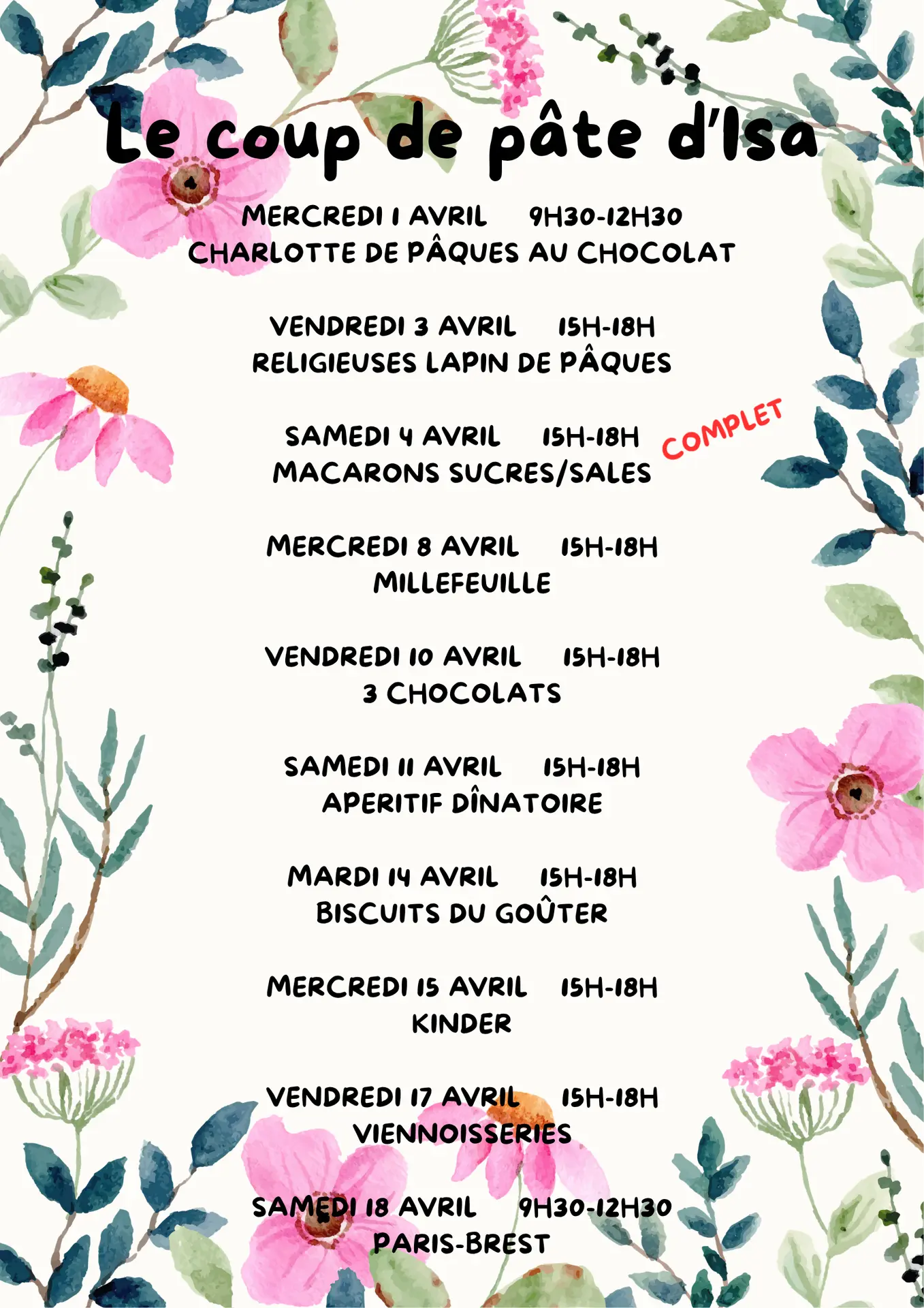 LE COUP DE PÂTE D'ISA : ateliers de pâtisserie